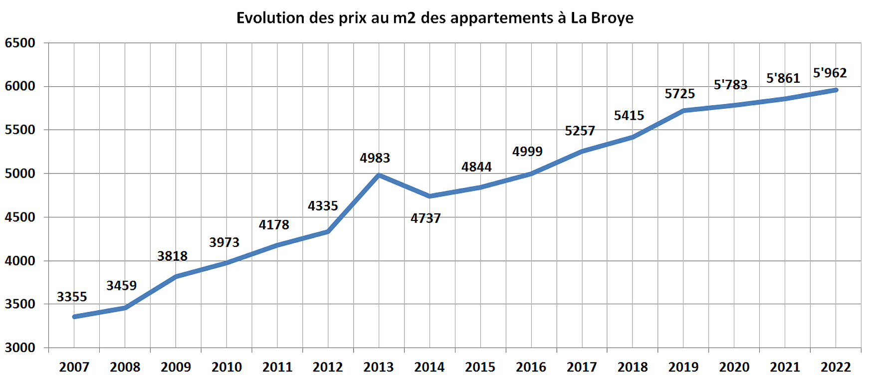 Evolution des prix au m2 des appartements à la Broye-Vully