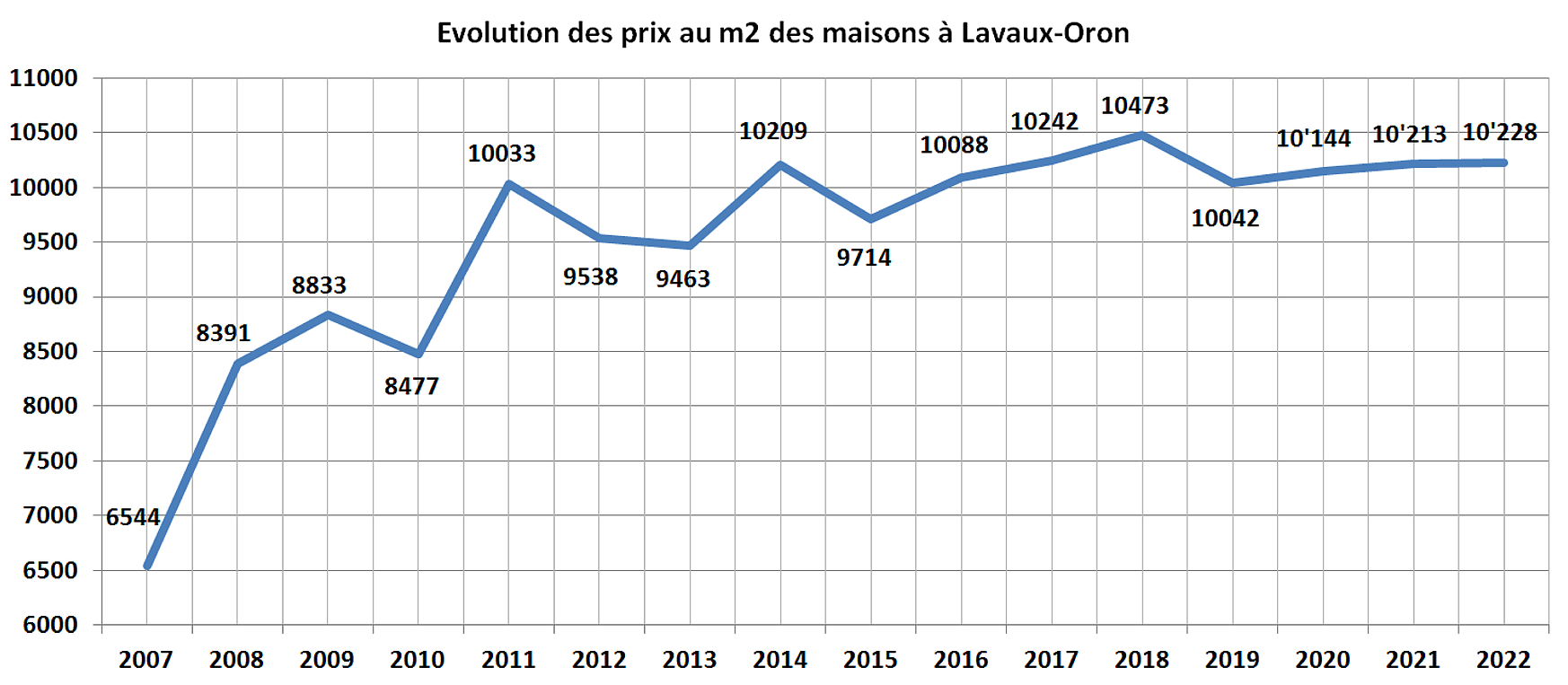 Evolution des prix au m2 des maisons dans le Lavaux-Oron